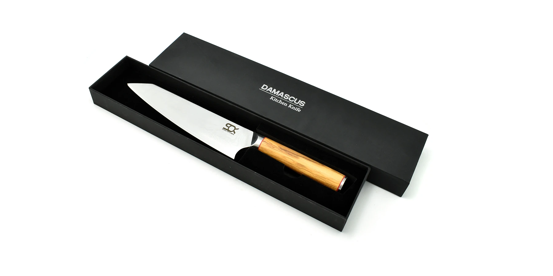Noże Dellinger Olive Wood Damascus wykute są z 67 warstw damasceńskiej stali. Rdzeń wykonany z wyjątkowej stali VG-10 o twardości 61º w skali Rockwella sprawia, że noże są niezwykle ostre i utrzymują ostrość przez długi czas. Warstwy miększej stali nierdzewnej 10Cr15CoMoV chronią rdzeń i nadają ostrzu elastyczności ułatwiając jednocześnie ponowne zaostrzenie. Polerowane ostrze z damasceńskim wzorem Ladder minimalizuje tarcie tnące i zapobiega przyklejaniu się ciętego materiału do ostrza. Nóż jest odporny na korozję, co jest dodatkowym atutem dla europejskiego odbiorcy.