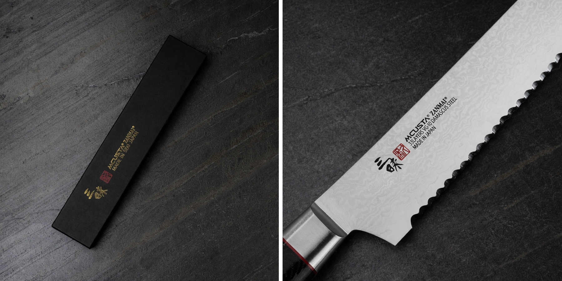 Mcusta Zanmai VG-10 Pro Zebra 23 cm to tradycyjny, ręcznie wykonany nóż japoński stworzony z myślą o perfekcyjnym krojeniu pieczywa. Wyposażony w długie, 23-centymetrowe ząbkowane ostrze, z łatwością przecina zarówno chrupiącą skórkę świeżego chleba, jak i miękki miąższ, nie powodując jego zgniatania czy kruszenia.