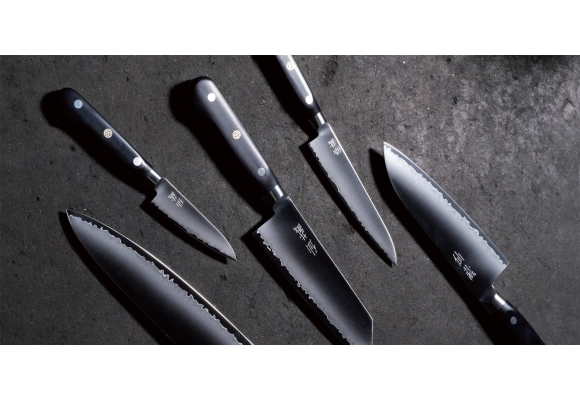 Ostrza noży Senzo Porfessional wykuwane są w konstrukcji Sanmai, trzy warstwy z rdzeniem z doskonałej stali proszkowej SG2. Stal SG2 jest uważana za jedną z najlepszych stali nierdzewnych w Japonii. Ma ona wyższą odporność na rdzę niż VG10 i więcej węgla niż Blue Paper Steel. W rezultacie ostrza z SG2 utrzymują krawędź dłużej niż noże ze stali węglowej przy czym nie wymagają specjalnych zabiegów konserwacyjnych. Ostrze ze stali proszkowej przekonuje niezwykłą ostrością i odpornością na ścieranie. Konstrukcja Sanmai sprawia, że na klindze tworzy się charakterystyczna linia zwana Katana-Edge.