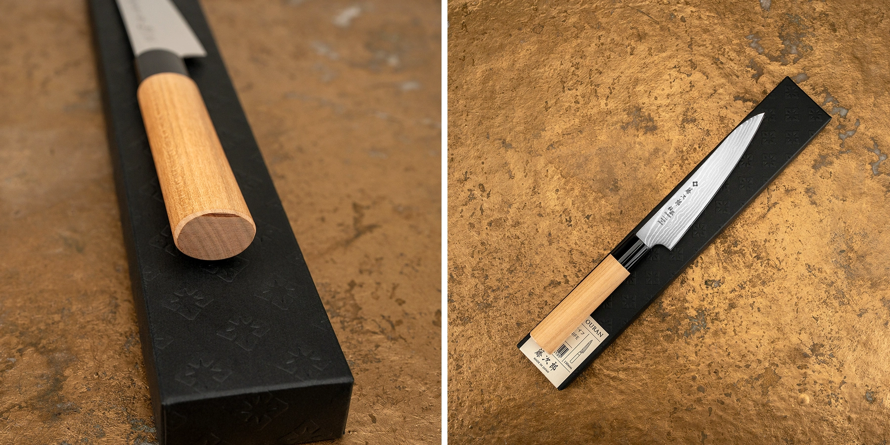 Seria Tojiro Ouran VG-10 Damascus nawiązuje do poetyckiego obrazu kwiatów wiśni unoszonych na wietrze, co doskonale oddaje jej nazwa „Ouran”. Ten motyw znajduje odzwierciedlenie w ostrzu wykonanym z 63 warstw stali damasceńskiej, którego delikatny, falujący wzór kojarzy się z lekkością i przemijającym pięknem kwitnących sakur.
