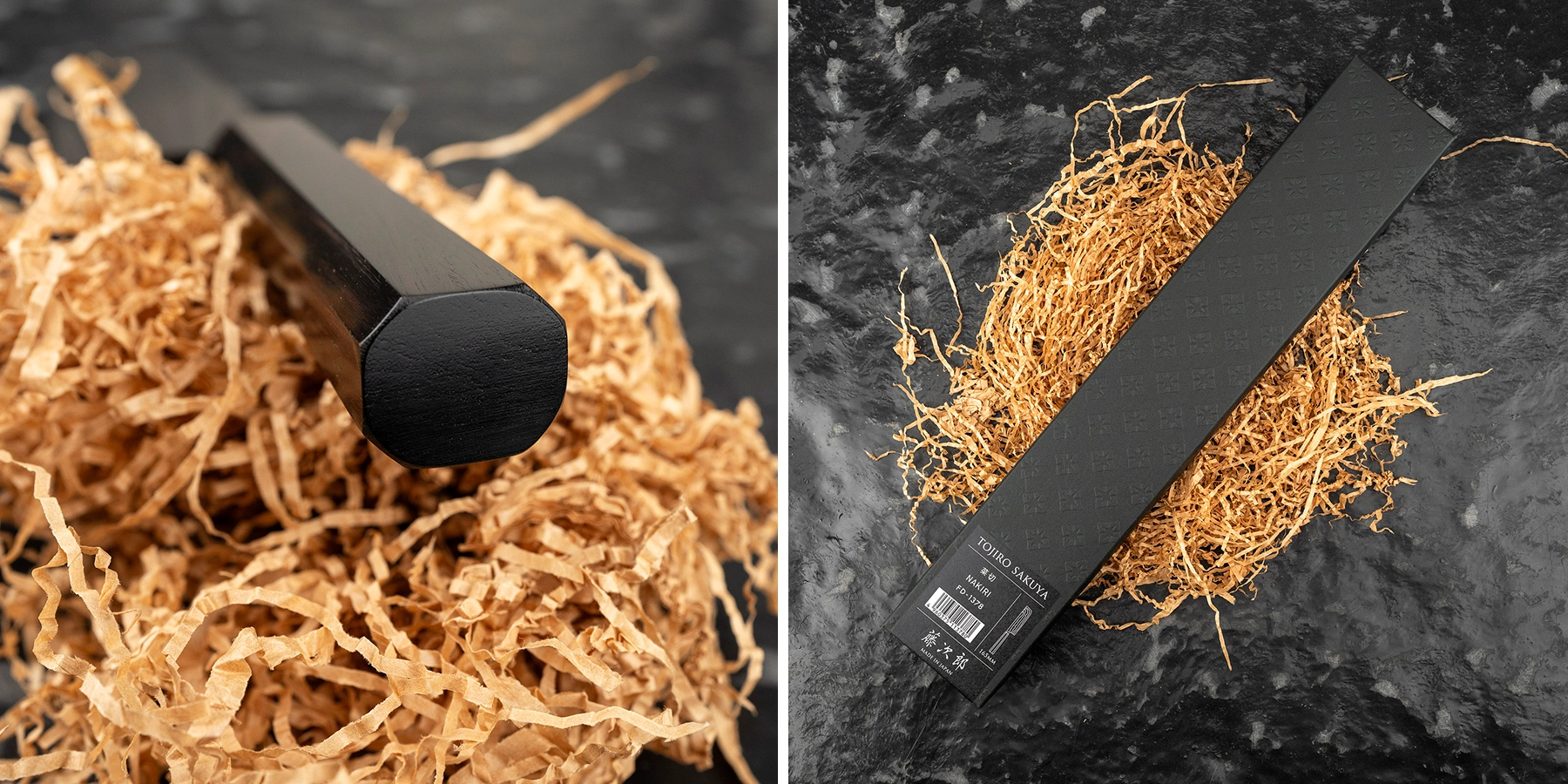 Całość dopełnia rękojeść wykonana z hebanu, uformowana w tradycyjny, ośmiokątny kształt. Dobrze leży w dłoni, gwarantuje pewny chwyt i podkreśla ekskluzywny charakter noża. To połączenie praktycznego narzędzia z estetyką japońskiego rzemiosła na najwyższym poziomie.